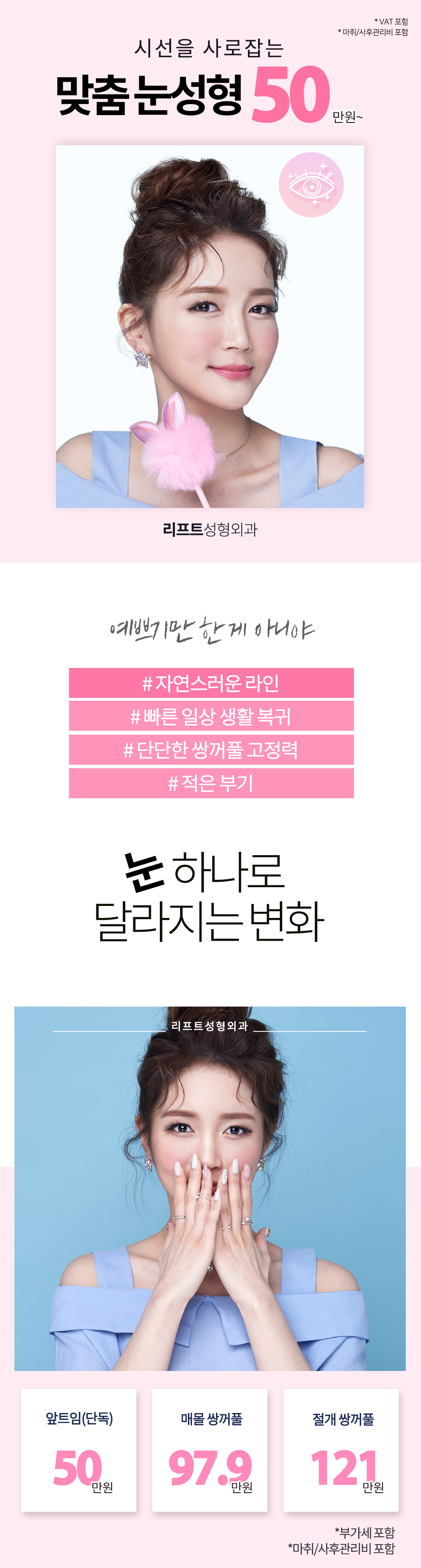 강남 눈성형은 워낙 인기가 많고 실제 지역에서 많은 분들이 시술을 하기 때문에 간단하고 쉬운 시술로 오해를 받는 경우가 많습니다. 하지만 눈에 관한 한 작은 모양의 변화만으로도 인상이 크게 바뀔 수 있기 때문에 더욱 섬세한 시술이 필요합니다. 잘못된 방법으로 시행할 경우 기능적 부작용은 물론 부자연스러운 결과를 초래할 수 있어 신중한 판단이 필요합니다.