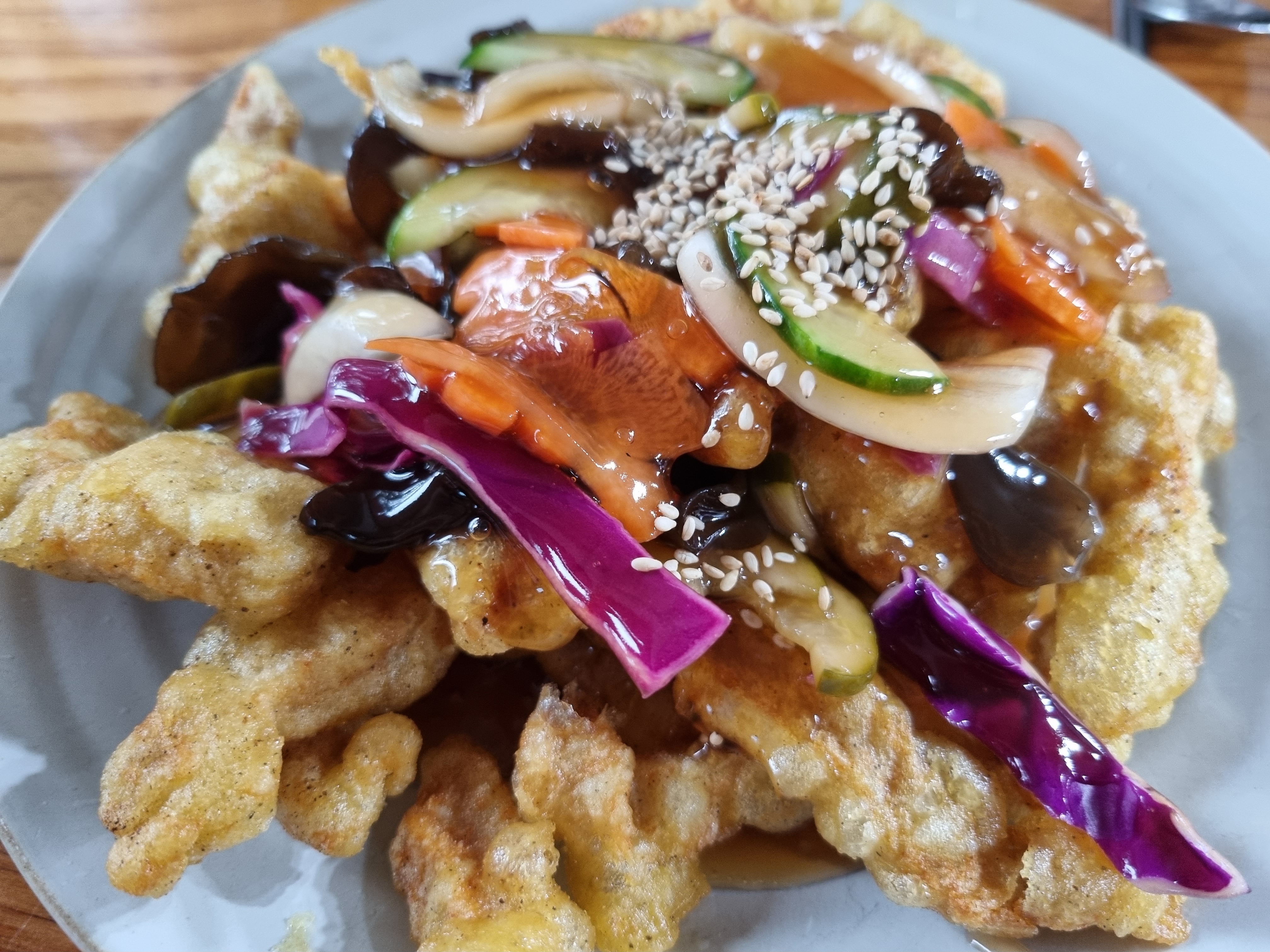 기본에 충실한 탕수육인데 덴푸라가 부드럽고 아삭아삭하고 안에 고기도 맛있고 그냥 다 맛있습니다.