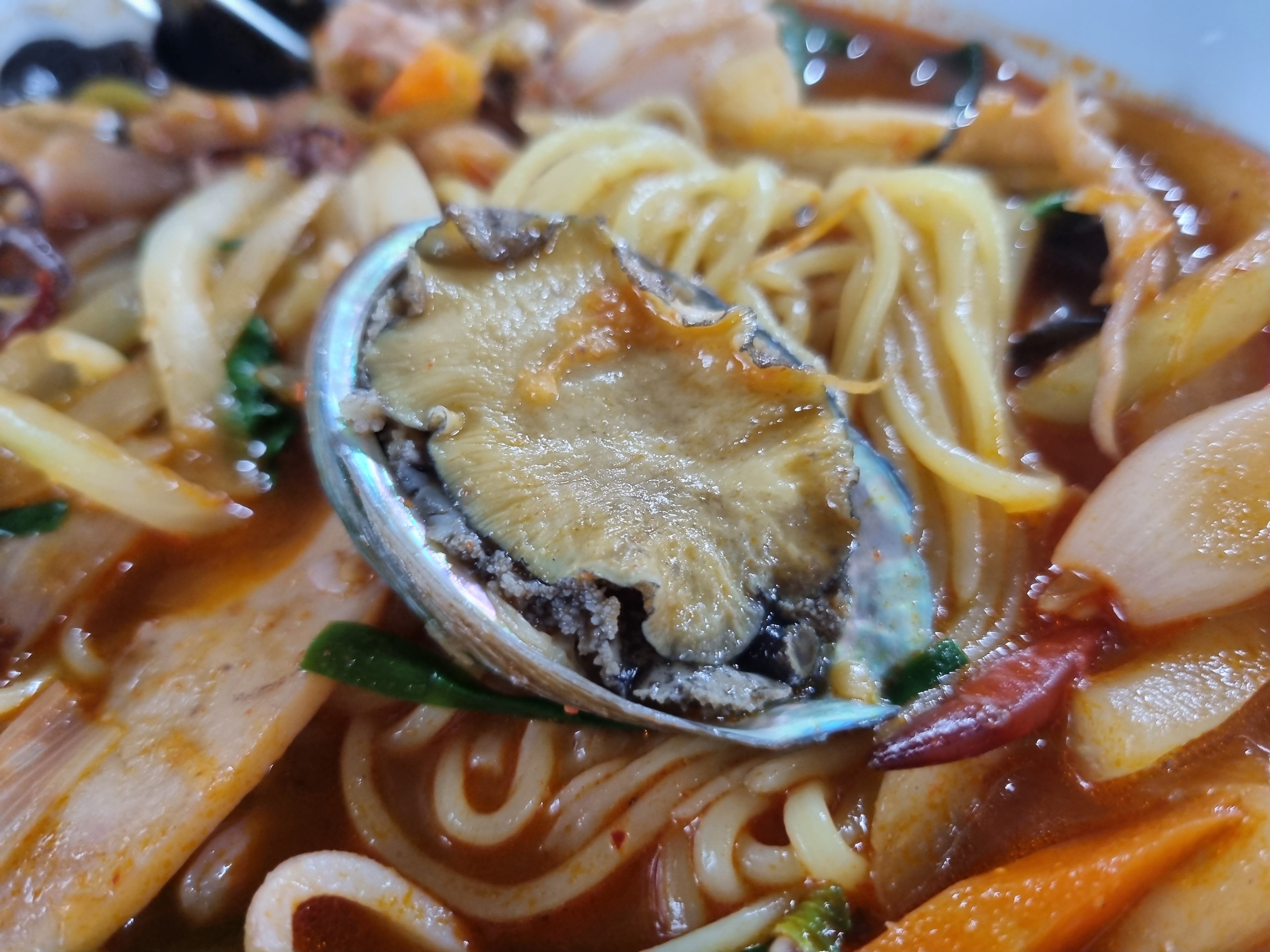 이렇게 큰 전복이 들어있고 해물짬뽕 같은 재료들이 많이 들어있어요.