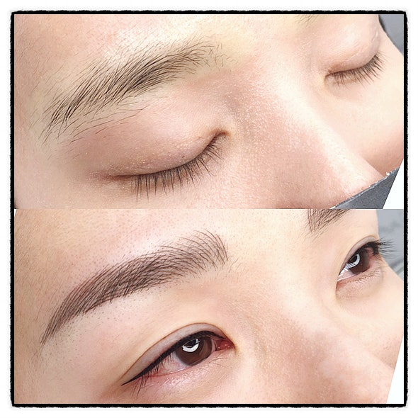 눈썹 결을 하나하나 살려 타투를 하지 않은 것처럼 마치 자신의 눈썹이 원래 많은 것 같은 느낌을 연출하는 자연 눈썹 기술이 있습니다.선을 하나하나 그려 자연스럽게 눈썹 문신을 하기 때문에 발랐을 때 짱구 같은 눈썹이 되지 않고 바로 밖에 나가도 될 정도로 자연스러운 눈썹 문신이지만 청순한 이미지나 자연스러운 화장을 하시는 분들께 추천하는 기술입니다.