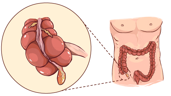 이 장애는 어떤 원인에 의한 맹장이 손상되어 입구가 막혀 생기는 질환으로 맹장이 막히면 전체적인 배변활동이 줄어들어 복통이나 배변이 정상적으로 이루어지기 어려운 증상을 호소하는 경우가 많습니다.