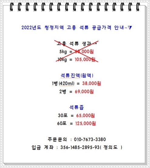 위 전화번호로 편리하게 주문하시고 석류즙을 직접 받아보세요.