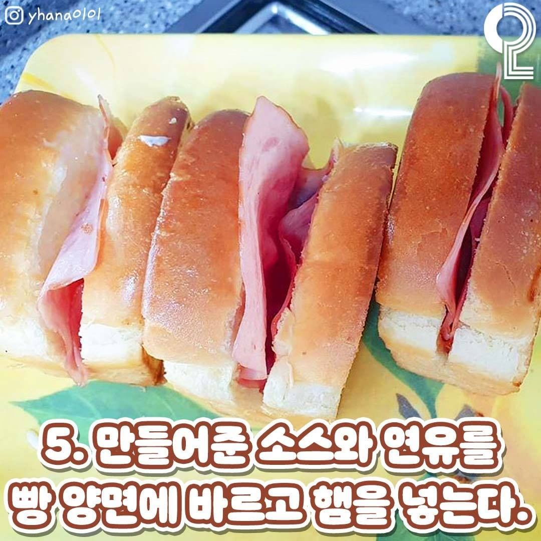 재료 : 스리라차 소스, 식빵, 베이컨, 체다치즈, 마요네즈, 계란, 연유, 버터, 파슬리