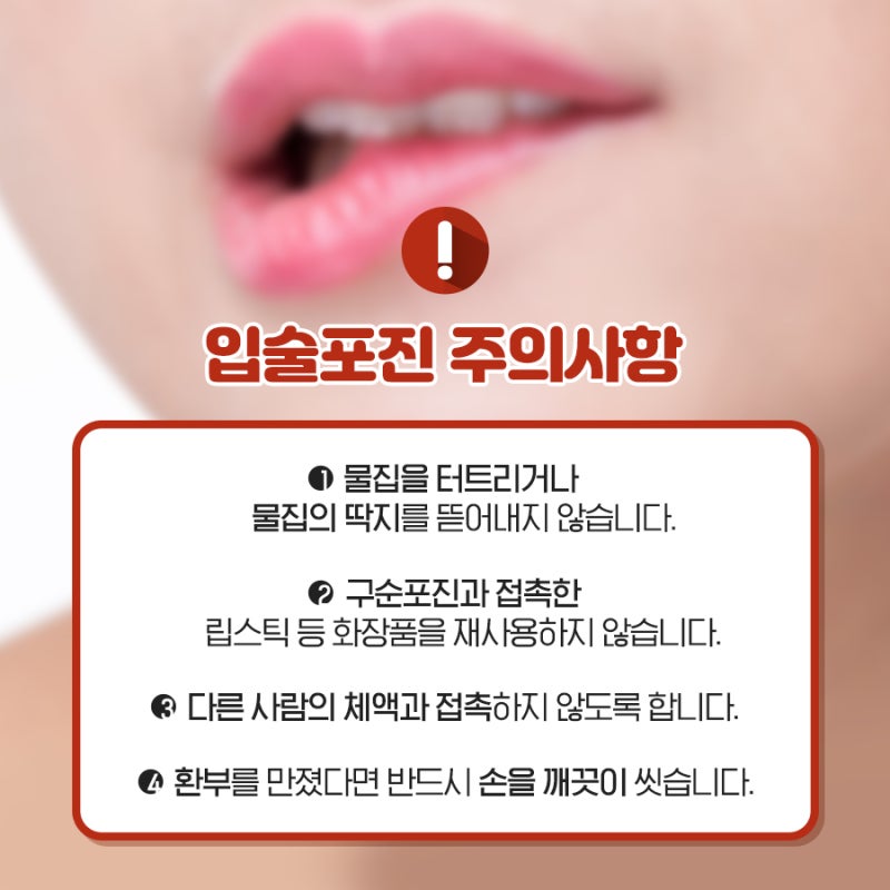 사실 문제를 일으키는 요인을 예방하는 것이 중요합니다. 매일 자외선 노출을 피하고 입술이 건조해지지 않도록 립밤을 덧발라 촉촉함을 유지해주세요. 또한 사용한 수건을 세탁할 때는 뜨거운 물에 담가 세탁한 후 건조기에 말려주세요. 또한 구순포진이 있는 사람과 같은 물건을 사용하지 않도록 주의하세요. 예를 들어 빨대, 물잔 등 일상생활에서 사용하는 물건을 말합니다.