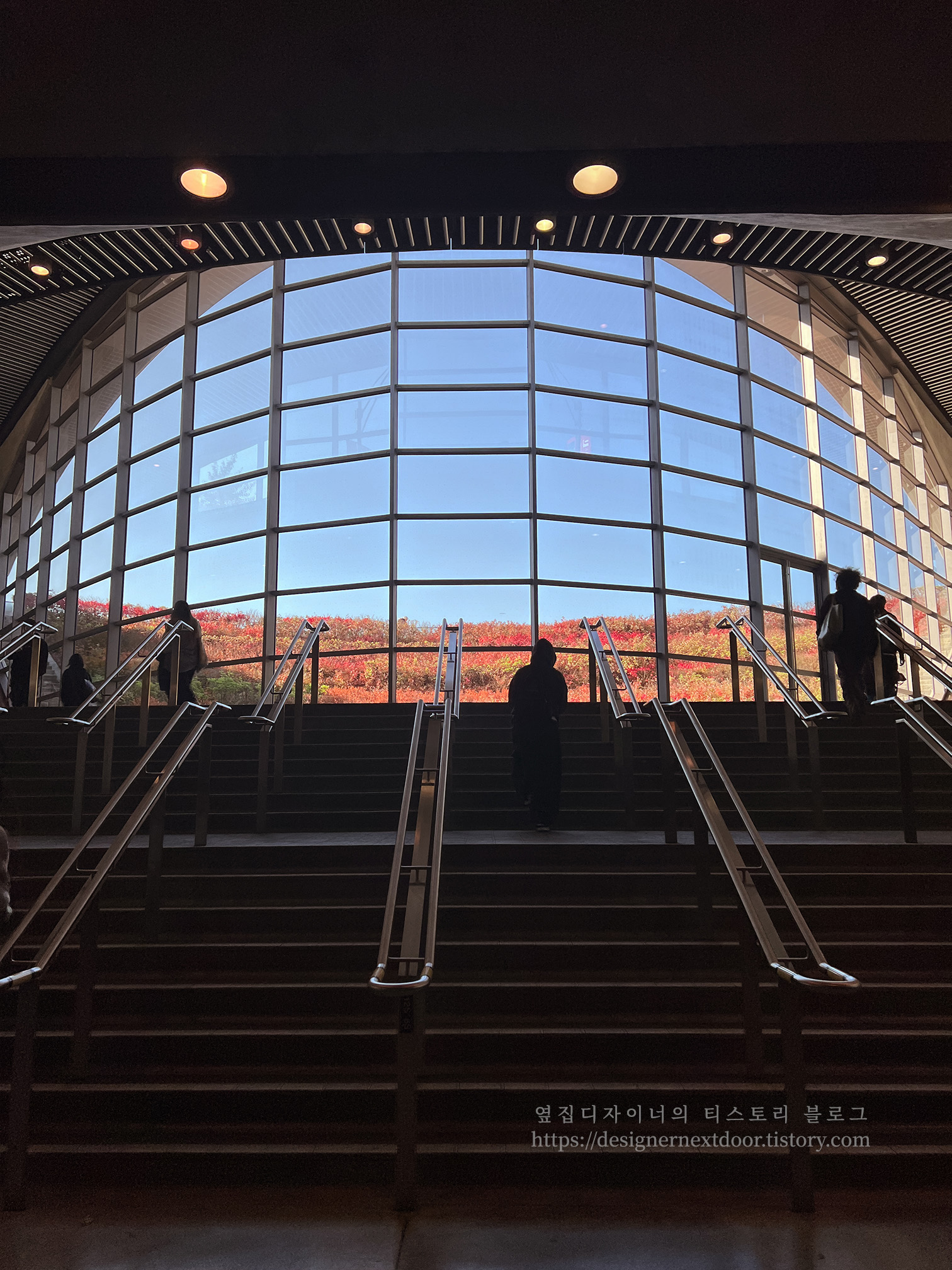 외부에서 본 욕대역 입구와 출구입니다. 곡선미를 살린 이야기 속 인물신경을 많이 써서 만들었다는 걸 느낄 수 있었습니다. 대학을 브랜딩하려는 시도겠죠?