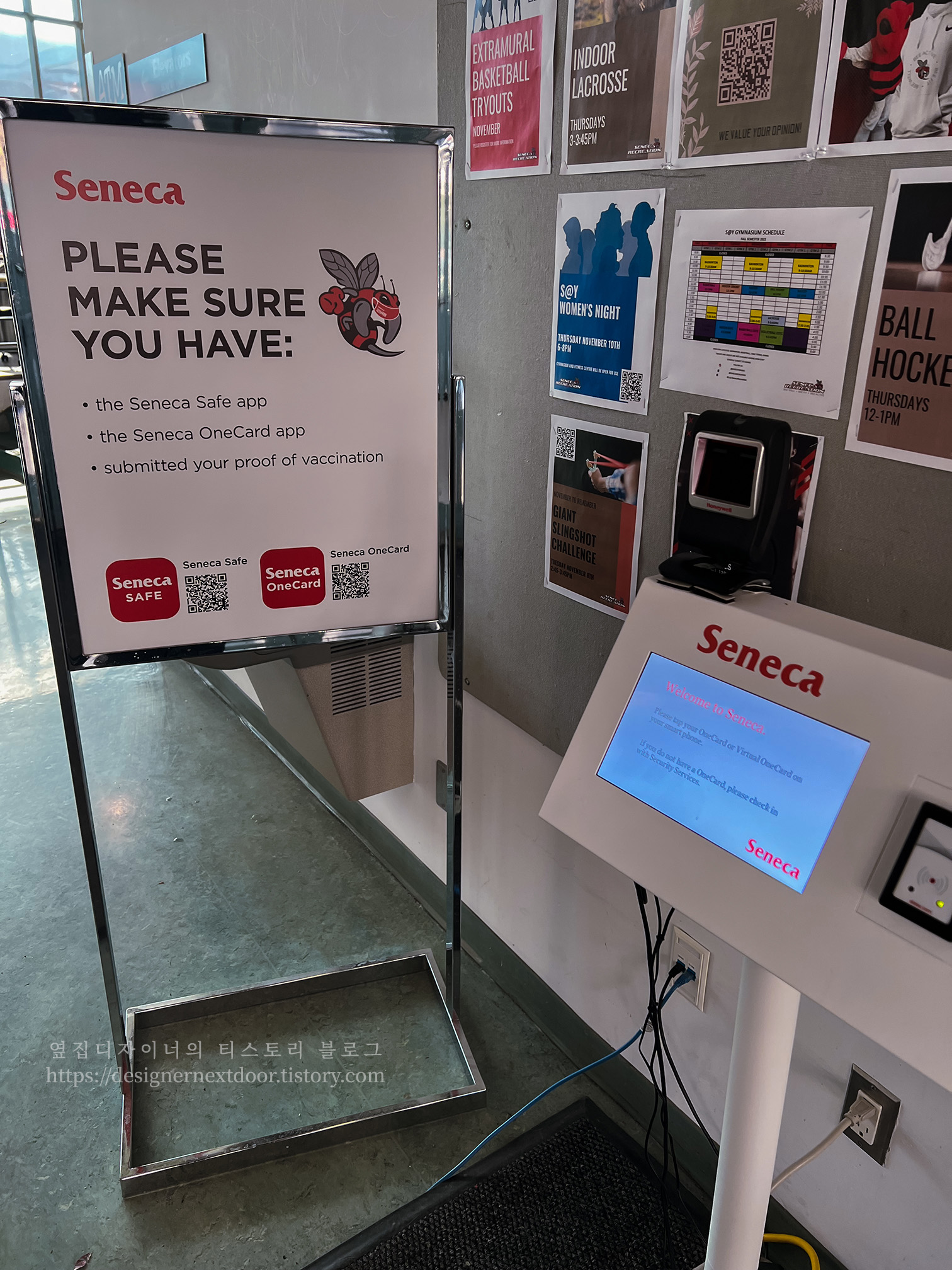셀카를 찍고 풍경 사진을 찍고 인스타그램에 스토리를 올린 후 다시 세네카 건물로 향했습니다. 건물에 들어갈 때, 세네카 원카드 앱 나는 그것을 열고 학생증 바코드를 스캔하고 건물에 들어갔다. (문의 경비원이 도왔습니다.)
