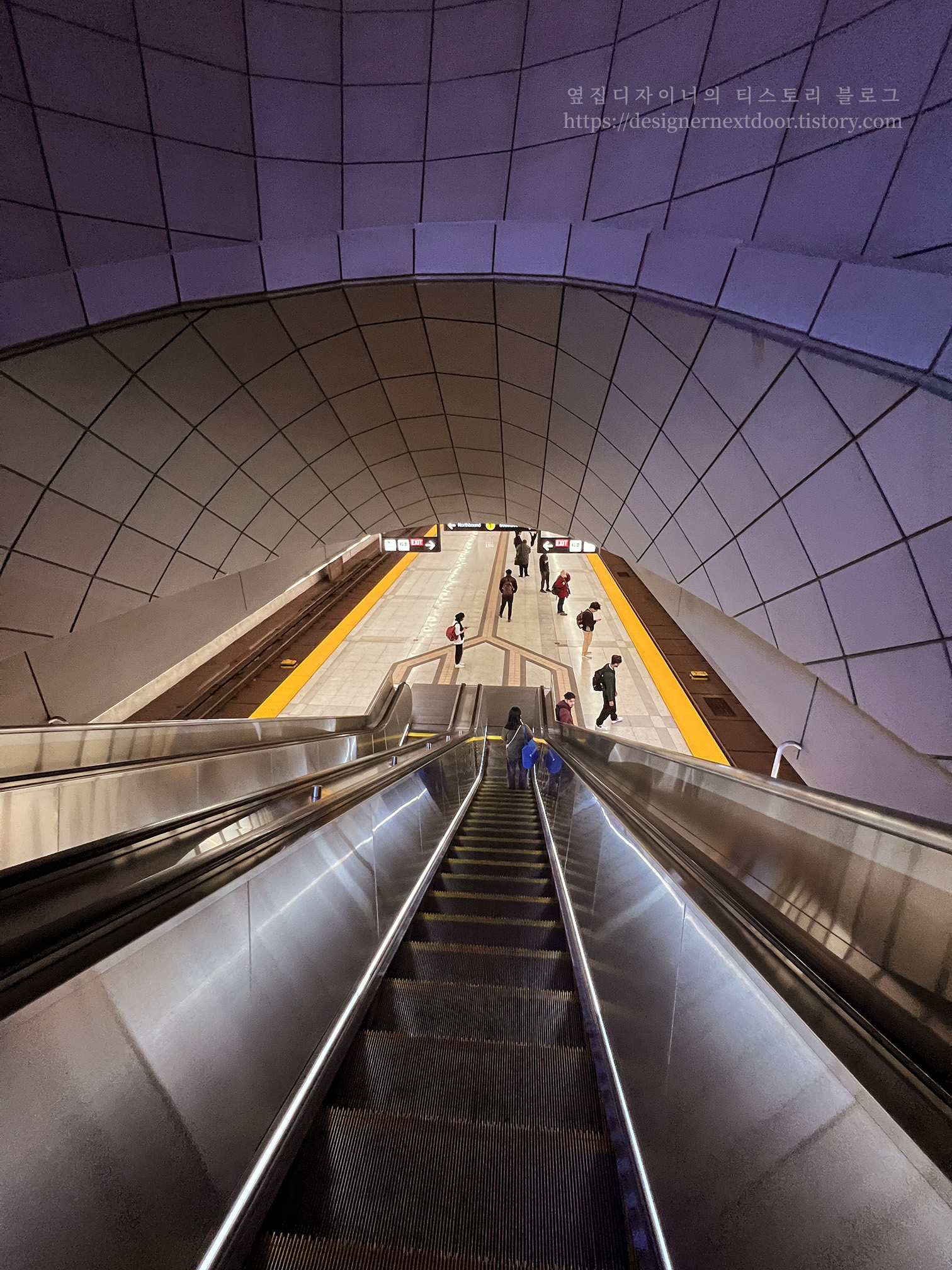 외부에서 본 욕대역 입구와 출구입니다. 곡선미를 살린 이야기 속 인물신경을 많이 써서 만들었다는 걸 느낄 수 있었습니다. 대학을 브랜딩하려는 시도겠죠?