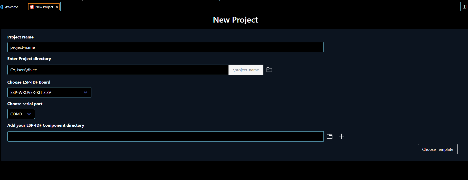 VSCODE ESP32 새 프로젝트를 생성하려고 하는데 화면이 멈추고 아래와 같은 오류 메시지만 나옵니다.