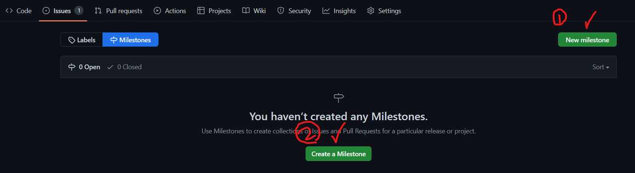 2. 마일스톤 만들기 또는 새 마일스톤을 클릭합니다.
