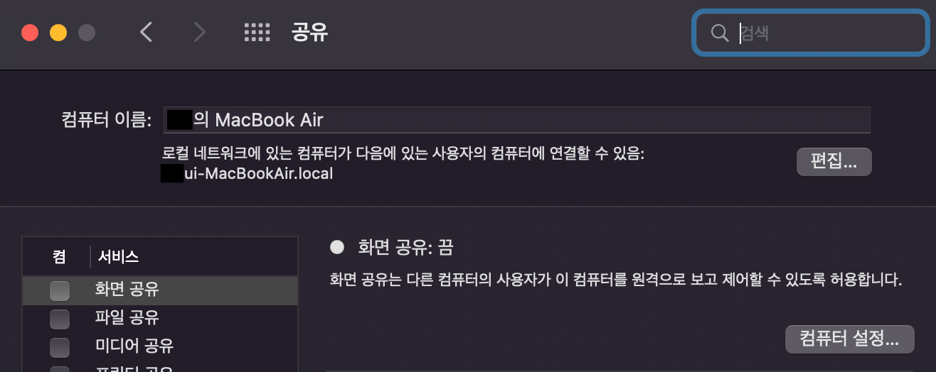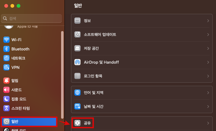 시스템 환경설정 > 공유로 이동합니다.